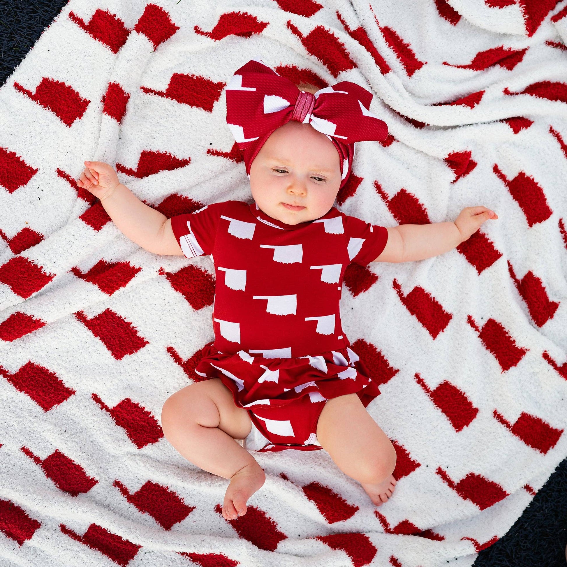 Baby Children Kids Gift State Football Plush Blanket Oklahoma Crimson & White